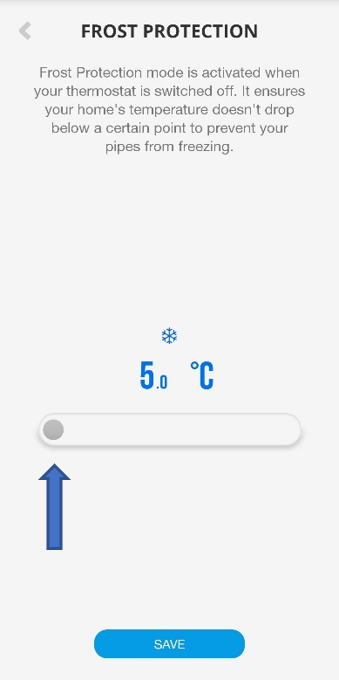 3. Glisați butonul pentru a regla temperatura de protecție la îngheț.